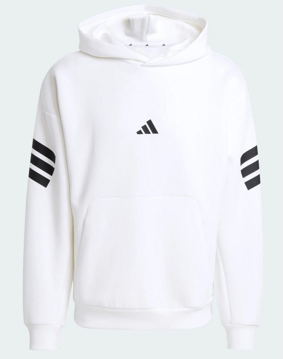 Męska bluza sportowa adidas zapewni komfort podczas drużynowego treningu lub relaksu w domowym zaciszu. Konstrukcja z trójwarstwowej dzianiny o podwójnym splocie miękko otuli ciało pomagając w utrzymaniu optymalnej temperatury. Przyjemna w dotyku, bawełna sprawi, że Twoja skóra będzie oddychać. Dodatek poliestrowych włókien zwiększa trwałość. Luźny krój naturalnie układa się na sylwetce oferując nieograniczony zakres ruchów. Dodatkową osłonę przed wiatrem zapewni obszerny kaptur bez regulacji oraz elastyczne wykończenie mankietów. Kieszeń na przodzie, w której można ogrzać dłonie pozwoli na przechowanie drobnych akcesoriów, które chcesz mieć pod ręką. Matowa, gumowana grafika symbolizuje linie, które łączą nas na boisku, dzięki czemu zawsze i wszędzie pokażesz, jak ważna jest dla Ciebie praca zespołowa. Materiał: 57% poliester pochodzący z recyklingu, 43% bawełna