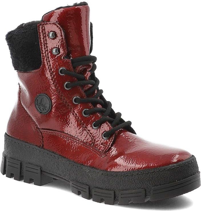 Czerwone Botki Rieker Lakierowane Buty Damskie Mogilno