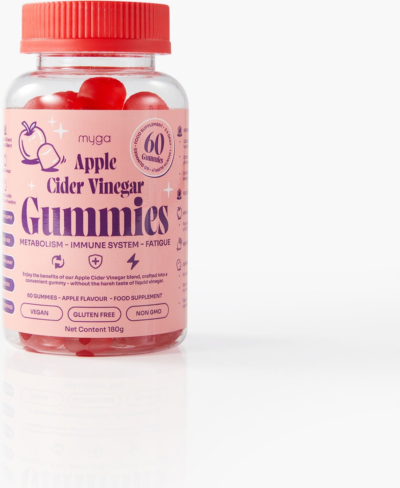 Jogowy_pl – z pasji do jogi i troski o planetę Jogowy_pl to miejsce stworzone przez joginów dla joginów. Łączymy miłość do jogi z odpowiedzialnym podejściem do zdrowia i środowiska. Oferujemy wyselekcjonowane akcesoria do jogi i medytacji od marek, które kierują się podobnymi wartościami: etyczną produkcją, przejrzystym łańcuchem dostaw i troską o planetę. Gdzie tylko możemy, stosujemy opakowania z recyklingu lub biodegradowalne. Naszą misją jest inspirowanie i wspieranie Twojej jogowej drogi – świadomie i z sercem. Żelki z octem jabłkowym Myga – codzienne wsparcie metabolizmu i energii Żelki Myga Apple Cider Vinegar Gummies to nowoczesny sposób na czerpanie korzyści z tradycyjnego octu jabłkowego z „matką” – bez intensywnego smaku i dyskomfortu. Dzięki dodatkowi proszku z buraków oraz witamin z grupy B, suplement wspiera metabolizm, odporność i poziom energii, a przyjemny jabłkowy smak sprawia, że codzienna suplementacja staje się łatwa i przyjemna. Specyfikacja i cechy Ocet jabłkowy z „matką” – wspiera naturalny metabolizm i równowagę organizmu. Witaminy z grupy B (B6, B12, kwas foliowy) – pomagają w redukcji zmęczenia i prawidłowym funkcjonowaniu układu odpornościowego. Proszek z buraków – naturalny składnik o dodatkowych właściwościach odżywczych. Smak jabłkowy – delikatny i owocowy, bez ostrości płynnego octu. Forma żelków – przyjemniejsza i łatwiejsza w stosowaniu niż płyn czy kapsułki. Wegańskie, bezglutenowe, bez GMO – odpowiednie dla różnych stylów życia. Testowane laboratoryjnie – potwierdzona jakość i bezpieczeństwo. Certyfikaty: Halal, GMP (Dobra Praktyka Produkcyjna). Opakowanie: 60 żelków (180 g) – miesięczna suplementacja. Zamknięcie bezpieczne dla dzieci. Wymiary opakowania: wysokość 113 mm, średnica góra 43 mm / podstawa 62,7 mm. Zastosowanie i przykłady Codzienne wsparcie metabolizmu – ocet jabłkowy od wieków stosowany jako naturalny środek regulujący procesy trawienne. Redukcja zmęczenia – witaminy z grupy B wspomagają wytwarzanie energii i równowagę układu nerwowego. Wsparcie odporności – kwas foliowy, B6 i B12 dbają o prawidłową pracę układu immunologicznego. Alternatywa dla płynnego octu jabłkowego – bez intensywnego, kwaśnego posmaku. Element codziennej rutyny wellness – idealny poranny dodatek wspierający energię na start dnia. Dla kogo i dlaczego warto Dla osób dbających o metabolizm i sylwetkę – naturalne wsparcie procesów trawiennych. Dla zapracowanych i zmęczonych – witaminy z grupy B pomagają odzyskać energię. Dla osób unikających płynnego octu – pyszna alternatywa w formie żelków. Dla wegan i osób na diecie bezglutenowej – produkt w pełni roślinny, bez GMO. Dlaczego warto? Synergia octu jabłkowego, witamin B i buraka. Jabłkowy smak zamiast intensywnego kwasu. Łatwa suplementacja – 2 żelki dziennie. Bezpieczny, certyfikowany skład – Halal, GMP, testy laboratoryjne. Sposób użycia Dawkowanie: 2 żelki dziennie. Dokładnie żuć przed połknięciem. Nie stosować u dzieci poniżej 18 lat. Ważne informacje To suplement diety – nie jest przeznaczony do diagnozowania, leczenia ani zapobiegania chorobom. Przeciwwskazania: kobiety w ciąży, karmiące piersią oraz osoby przyjmujące leki powinny skonsultować stosowanie z lekarzem. Myga Apple Cider Vinegar Gummies to wygodne, smaczne i skuteczne wsparcie dla Twojego metabolizmu, odporności i energii – bez ostrego smaku płynnego octu.