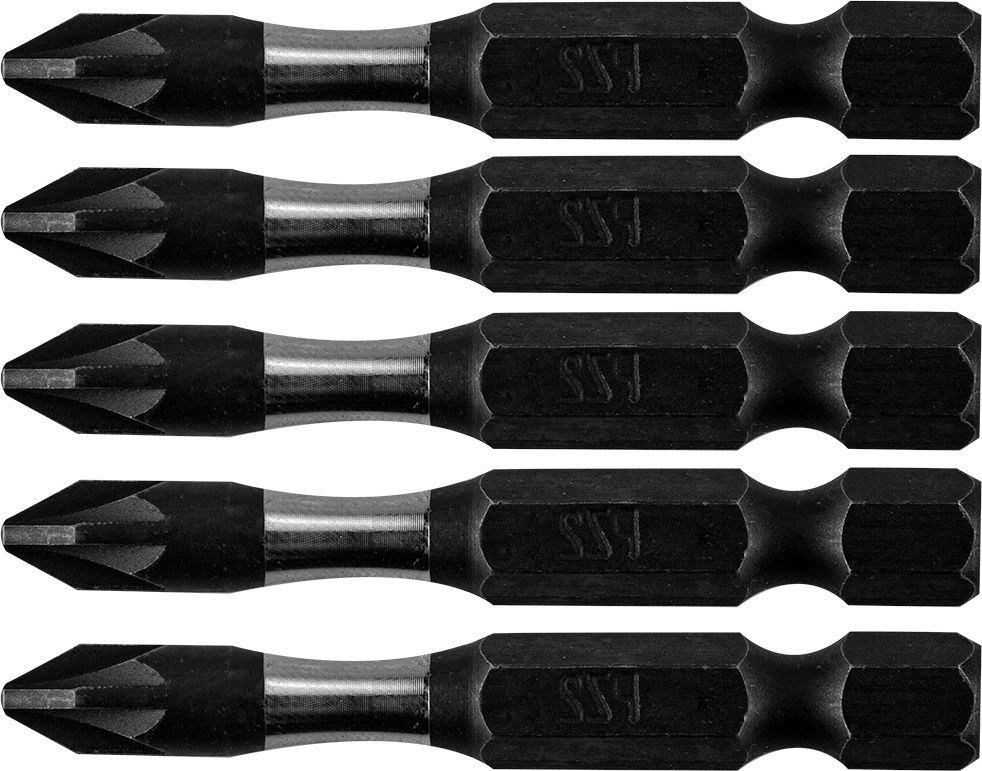 NEO TOOLS 09-579 Bity udarowe S2, 50 mm, PZ2 - 5 szt. Bity udarowe NEO (nr ref. 09-579) to zestaw 5 profesjonalnych bitów udarowych typu PZ2 o długości 50 mm. Przeznaczone są do wkrętarek 1/4”. Posiadają system, który zabezpiecza je przed wyślizgnięciem się grota z wkręta. Bity wykonane zostały ze …