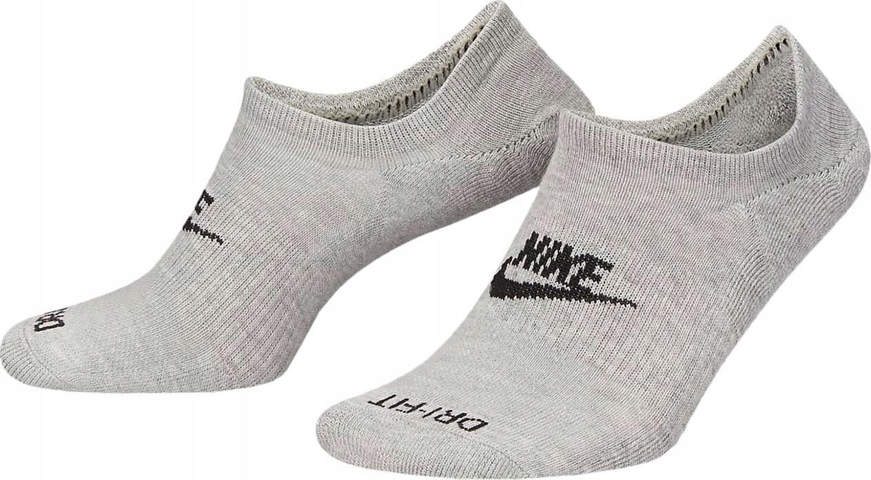 Skarpety Nike NK Everyday Plus Cush Footie szare DN3314 063 Rozmiar 34-38 Uzupełnij garderobę o skarpety Nike i zadbaj o długotrwałą wygodę na każdym etapie aktywności. Szybkoschnąca konstrukcja będąca wyważonym połączeniem różnych włókien przyczynia się do trwałości. Wsparcie w technologii Dri-FIT pomaga na bieżąco odprowadzać nadmiar wilgoci, aby przyjemne uczucie suchości towarzyszyło Tobie, gdy stawiasz czoła codziennym wyzwaniom. Fason o niskim kroju z silikonowym paskiem wewnątrz nie będzie wystawał z obuwia, więc wykończysz estetycznie niemal każdą stylizację. Ściągacz pomoże utrzymać skarpety na miejscu podczas ruchu. Dodatkowa amortyzacja z dżerseju spotęguje uczucie wygody w trakcie chodzenia. Zestaw zawiera trzy pary skarpet w wydaniu dopełnionym kontrastowym logo producenta, dlatego wpasuje się w gusta osób w różnym wieku. Wyeliminuj dyskomfort ze swojego planu dnia wybierając skarpety Nike. Materiał: 63% poliester, 35% bawełna, 2% spandex