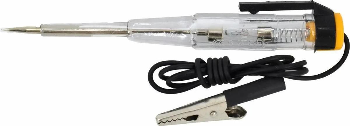Grot wykonany z hartowanej stali wglowej. Transparentna obudowa z tworzywa ABS. Dioda LED sygnalizujca napicie. Wyposaony w przewd poczeniowy z zaciskiem uziemiajcym "krokodylkiem". Przeznaczony do napi prdu staego DC. Idealny do sprawdzania obwodw, bezpiecznikw, przecznikw i przewodw w samochodach, przyczepach, odziach, motocyklach i innych systemach niskiego napicia. Dane techniczne: Dugo cakowita: ok. 140 mm Zakres pomiarowy od 6 V do 24 V Dugo kabla: 90 cm Waga: 40 g