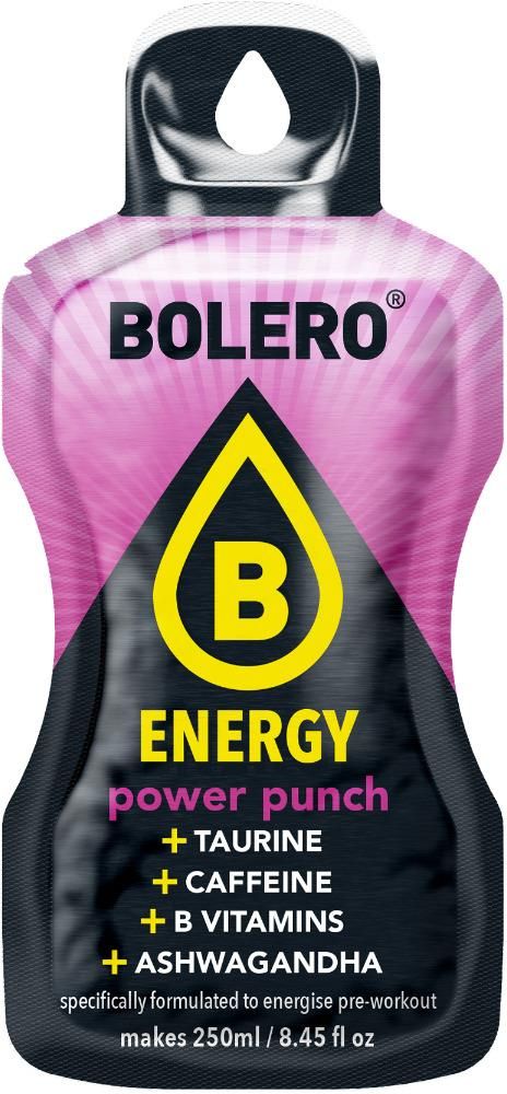 BOLERO 7g ENERGY EXOTIC PUNCH - PROSZEK DO PRZYGOTOWANIA NAPOJU ENERGETYCZNEGO ZE SŁODZIKAMI NIE ZAWIERA CUKRU WYSOKA ZAWARTOŚĆ KOFEINY (32MG/ 100ML) NIE ZALECA SIĘ SPOŻYWAĆ DZIECIOM, KOBIETOM W CIĄŻY I KARMIĄCYM PIERSIĄ ZAWARTOŚĆ ROZPUŚCIĆ W 250ML - 500 ML WODY SKŁADNIKI KWASY: KWASEK CYTRYNOWY; …