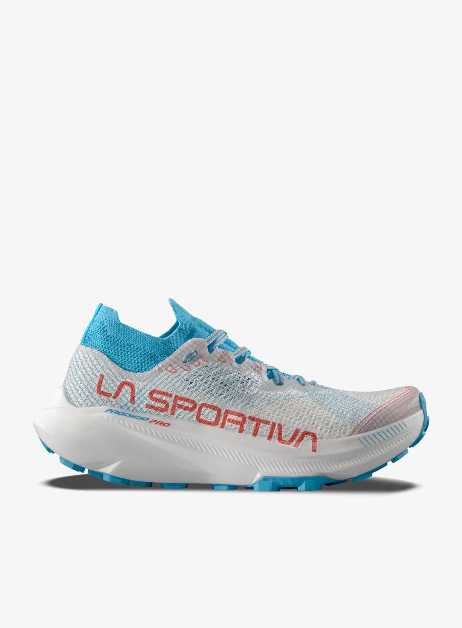 Buty trailowe damskie La Sportiva Prodigio Pro - white/malibu blue to model stworzony z myślą o biegaczkach ultra, które dążą do osiągnięcia swoich najlepszych wyników. Dzięki środpodeszwie XFlow Speed, która została wykonana z recyklingowanej pianki TPU, zapewniają one wysoki poziom amortyzacji …