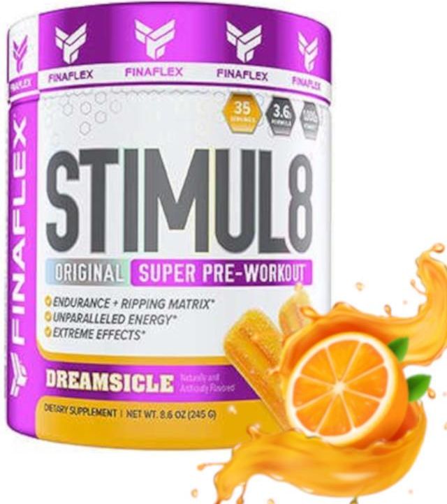 FINAFLEX STIMUL 8 ORGINAL SUPER PRE WORKOUT 245 GRAM pomarańczowo-waniliowy działanie energetyczne fantastyczne rezultaty koncentracja na treningu spalanie tłuszczu efektywniejszy trening renomowana amerykańska marka FINAFLEX Innowacyjne składniki Stimul8 Stimul8 od firmy FINAFLEX to spalacz …