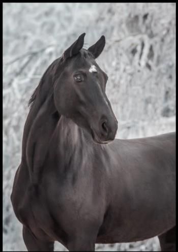 Zdjęcie czarnego konia na tle zaszronionych drzew. Do plakatu nie jest dołączona ramka. *PLAKAT NIESPODZIANKA - to dowolny plakat z naszej kolekcji, w dowolnym wymiarze, jednak nie większy niż zamówiony rozmiar. Plakat konfekcjonowany jest losowo, dlatego nazywa się niespodzianka. My również nie wiemy, jaki wzór do Ciebie trafi. Jednak każdy lubi niespodzianki, dlatego możemy śmiało stwierdzić, że to oczekiwanie sprawi niesamowitą radość.