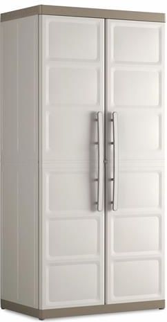 Niewymagająca konserwacji szafa do przechowywania Keter Excellence Utility o wysokiej odporności na działanie czynników atmosferycznych i zużycie mechaniczne oraz z możliwością zamknięcia, można jej używać w domu, w garażu, w komórce, w piwnicy, przed domkiem ogrodowym lub gdziekolwiek indziej. …