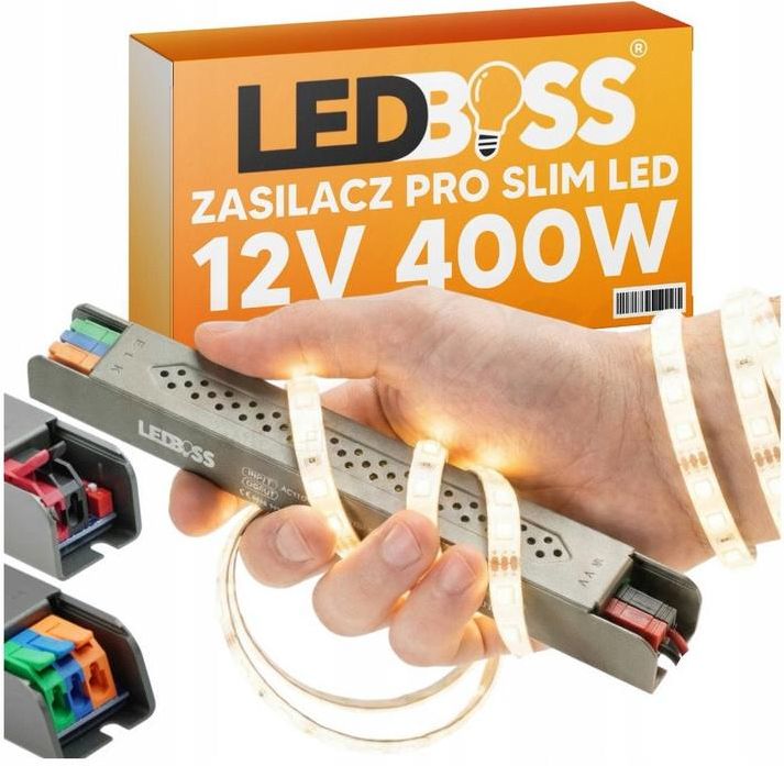 📌 DLACZEGO ZASILACZ LEDBOSS®? 💡 MOCNA OBUDOWA SLIM: Wygląd wykonany z pogrubionego stopu aluminium o dużej gęstości, zapewniając naturalne chłodzenie powietrzem i szybkie odprowadzanie ciepła. 💡 SZYBKI MONTAŻ BEZ NARZĘDZI: Zasilacz posiada wysokiej jakości, wysokonapięciowe zaciski szybkiego montażu. 💡 ZAPAS MOCY I CZYSTOŚĆ PRĄDU: Zastosowany schemat rezonansowy zapewnia pełną moc, niskie straty i oszczędność energii oraz silną zdolność antyprzepięciową dzięki wielokrotnemu filtrowaniu. 💡 SOLIDNOŚĆ, KTÓRĄ CZUJESZ W DŁONI: Wyższa waga naszego zasilacza to dowód na to, że w środku znajdują się pełnowartościowe, najwyższej jakości komponenty, a nie puste powietrze. NOWY WYMIAR MONTAŻU - ZŁĄCZA ZACISKOWE Twój zasilacz LedBOSS® jest wyposażony w innowacyjne zaciski bezśrubowe (patrz zdjęcia) – to najszybszy i najpewniejszy system podłączenia na rynku! Otwórz: Podnieś kolorowy zatrzask Wsuń: Wsuń odizolowaną końcówkę przewodu w otwór. Zamknij: Opuść zacisk i upewnij się, że przewód jest zamocowany stabilnie. 🛡️ PANCERNA OCHRONA I NIEZAWODNOŚĆ NA LATA Twój spokój jest bezcenny. Dlatego wyposażyliśmy zasilacz LedBOSS® w kompletny pakiet zabezpieczeń. Ochrona przed przepięciem Ochrona przed przeciążeniem Ochrona nadprądowa Ochrona przed zwarciem Ochrona przed przegrzaniem 📌 Dodatkowo certyfikaty CE i RoHS to nie puste znaczki. To Twoja pewność, że wybierasz produkt sprawdzony i bezpieczny. 🔧 PARAMETRY TECHNICZNE ZASILACZA Zakres napięcia wejściowego: AC 170-264V 50/60Hz Napięcie wyjściowe: 12V/24V Prąd wyjściowy: 33.3A/16.6A Moc wyjściowa: 400W Temperatura pracy: -30 ~ 60℃ (w odniesieniu do krzywej obniżenia mocy) Certyfikacja bezpieczeństwa: CE, RoHS
