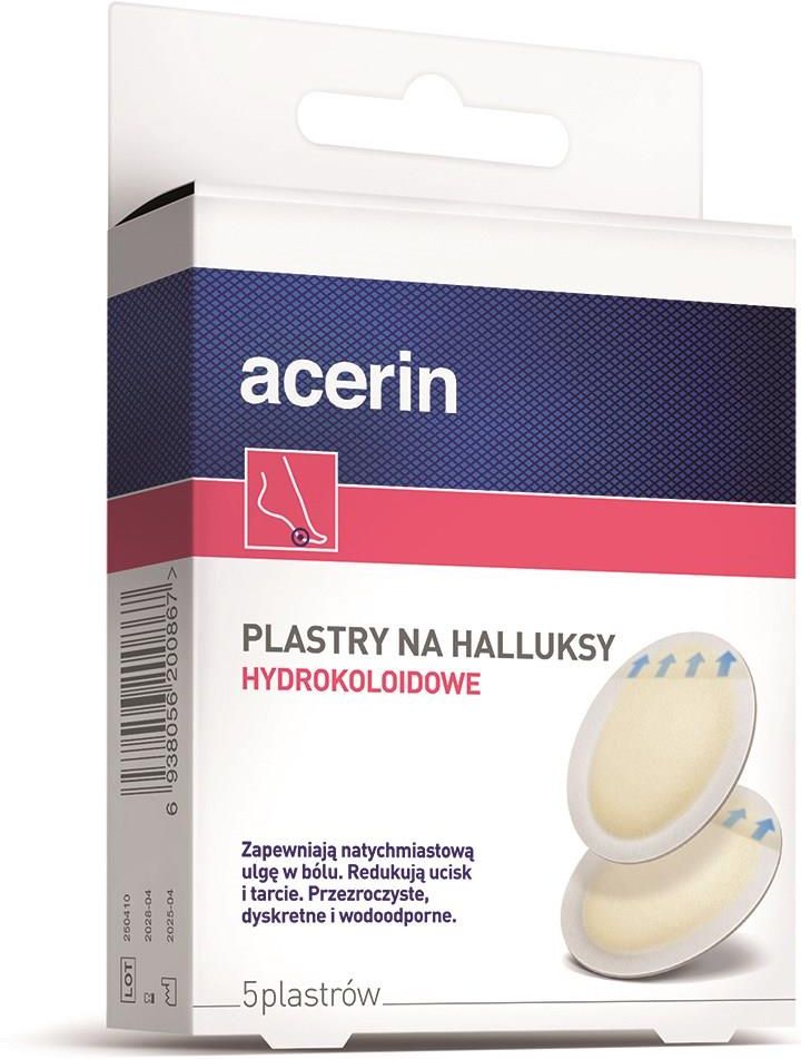 ACERIN PLASTRY NA HALLUKSY HYDROKOLOIDOWE Dzięki hydrokoloidowej formule, plastry działają jak druga skóra, zabezpieczając oraz utrzymując jej optymalne nawilżenie. Pozwala to złagodzić ból i dyskomfort związany z halluksem oraz poprawić komfort chodzenia. Ścięte krawędzie zapewniają …