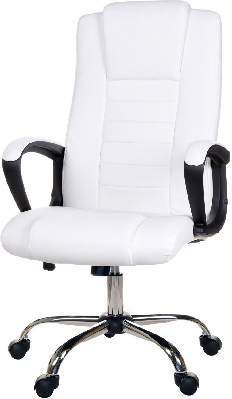 Wygodny obrotowy fotel biurowy FBS002 wykonany ze skóry ekologicznej w kolorze białym. Fotel posiada funkcję TILT.