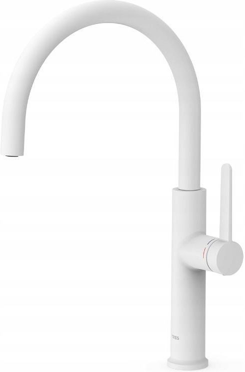 TRES bateria kuchenna stojąca, biały mat Perlator Wprowadza powietrze w strumień wody, co powoduje wrażenie jego większej objętości. Pomaga podnieść ciśnienie w instalacji i stworzyć pozory mocniejszego strumienia przy faktycznie mniejszym zużyciu wody. Gwarancja Producent udziela 5-letniej gwarancji na baterie oraz 2 lata na pozostałe elementy. Główne cechy: - kolor: biały mat - rodzaj: zlewozmywakowa - typ: jednouchwytowa - montaż: stojąca - rodzaj wylewki: obrotowa - perlator - Cold-tres- Oszczędność energii. Po uruchomieniu baterii najpierw zawsze wypływa tylko zimna woda, co zapobiega niepotrzebnemu włączeniu Dane techniczne: - zasięg wylewki: 264 mm - wysokość korpusu: 410 mm - średnica przyłącza: 3/8" - kąt obrotu wylewki: 360 stopni