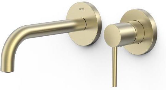 Bateria umywalkowa TRES STUDY cava złota 26230021CA STUDY Elementy zewnętrzne do podtynkowego korpusu baterii umywalkowej Bateria umywalkowa TRES STUDY w kolorze złotym to nowoczesny, podtynkowy model wyróżniający się eleganckim wykończeniem. Jej minimalistyczny design i jednouchwytowa konstrukcja sprawiają, że obsługa baterii jest prosta i wygodna, a kolor dodaje łazience nowoczesnego, wyrazistego charakteru. Produkt obejmuje wyłącznie elementy zewnętrzne, co pozwala na dyskretne i estetyczne wyeksponowanie baterii w strefie umywalkowej. To idealne rozwiązanie dla osób szukających stylowego, a jednocześnie funkcjonalnego akcentu do łazienki. Cechy produktu: Kolor: złoty cava Rodzaj: umywalkowa Montaż: podtynkowa Perlator OCULTO DE SILICONA M18.5x1 Tylko elementy zewnętrzne Zestaw zawiera: nakładka uchwyt wylewka W zestawie brak elementu podtynkowego (20830002), który należy zakupić oddzielnie. Dane techniczne: zasięg wylewki: 177 mm szerokość baterii: 194 mm rozstaw przyłączy: 120 mm przepływ (l/min): 5,7