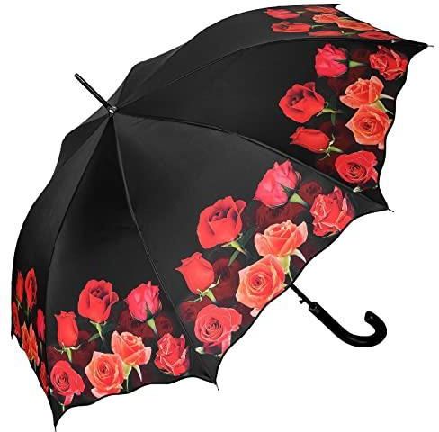 VON LILILIENFELD Parasolka z laską róży, duży, wytrzymały, automatyczne otwieranie dla kobiet, wielokolorowy, 88/90, Parasol z wędką Morąg