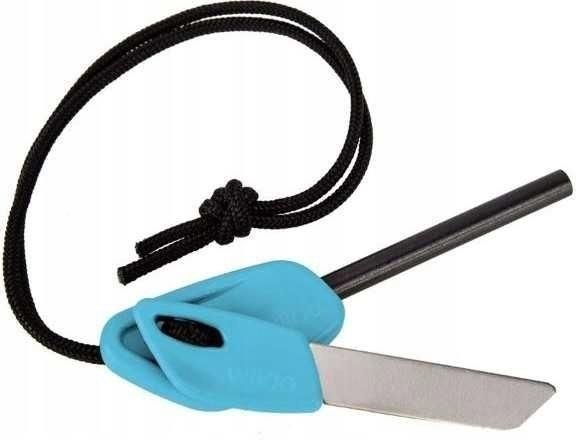 Krzesiwo Wildo Fire-Flash Pro Small Light Blue 3000 Krzesiwo Wildo Fire-Flash Pro Small Light Blue Firma WILDO® produkuje na potrzeby NATO i Armii Szwedzkiej. Najwyższa jakość materiałów i wykonania, funkcjonalność oraz niezawodność. Skuteczne i niezawodne krzesiwo Wildo FireFlash® Pro Small wyprodukowane w Szwecji. Krzesiwo z prętem ferrocerowym o średnicy 6 mm dające duży snop iskier o temperaturze 3000°C. Działa nawet w trudnych warunkach atmosferycznych np. w trakcie deszczu i wiatru oraz na dużych wysokościach. Z pomocą krzesiwa można rozpalić np. kuchenkę gazową, turystyczną lub ognisko, które jest źródłem ciepła i umożliwia przygotowanie posiłku z dala od domu. Doskonale sprawdzi się nie tylko podczas biwaków, lecz także w sytuacjach awaryjnych. Pręt krzesiwa osadzony jest w ergonomicznym uchwycie wykonanym z kompozytu, zapewniającym stabilny chwyt. Dołączona stalowa blaszka również osadzona jest w wygodnym kompozytowym uchwycie. Oba elementy połączone są ze sobą za pomocą kawałka parakordu. Uchwyty blaszki-iskrownika oraz pręta krzeszącego są w kolorze jasno niebieskim. Skuteczne krzesiwo do rozpalenia ognia w terenie, na biwaku lub przy domu. Niezawodne w każdej sytuacji. Producent: Wildo, Szwecja.
