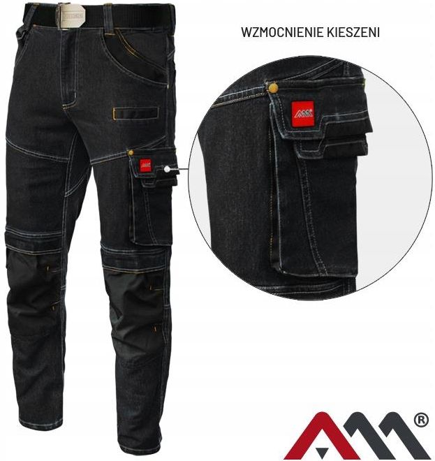 Art-Mas Spodnie Robocze Do Pasa Jeansowe Stretch Czarne M Morawica