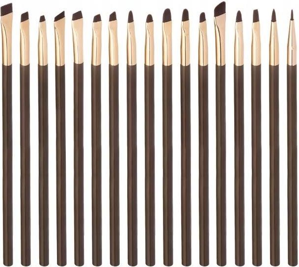 MANY BEAUTY - Many Brushes Sharp & Simple - Zestaw 17 precyzyjnych pędzli do makijażu Sharp & Simple marki Many Beauty. Zestaw pędzi. Składa się z 17 różnych modeli stworzonych do wykonywania profesjonalnych makijaży. Doskonale sprawdzą się do zrobienia perfekcyjnej kreski, dokładnego wyrysowania konturu ust oraz do stylizacji brwi. Wykonane zostały ze sprężystego wegańskiego włosia Straight Fibers idealnie współpracującego z produktami płynnymi i kremowymi, które nie pochłaniają kosmetyków. Włosie to umieszczono na brązowym trzonku w złotej skuwce z logiem marki. Całość zapakowano w elegancki kartonik, dzięki czemu doskonale nada się na prezent dla bliskiej osoby. Zestaw 17 pędzli. Umożliwi stworzenie wielu makijaży. Doskonały dla profesjonalistów i amatorów. Wykonany z wegańskiego, sprężystego włosia. ZESTAW ZAWIERA:MBSH-01 - Duży prosty pędzel do brwi. WYMIARY: długość rączki 15,3 cm, długość włosia 0,6 cm, rozpiętość włosia 0,8 cm.MBSH-02 - Średni prosty pędzel do brwi. WYMIARY: długość rączki 14,8 cm, długość włosia 0,5 cm, rozpiętość włosia 0,6 cm.MBSH-03 - Mały prosty pędzel do brwi. WYMIARY: długość rączki 14,8 cm, długość włosia 0,3 cm, rozpiętość włosia 0,4 cm.MBSH-04 - Duży skośny pędzel do brwi. WYMIARY: długość rączki 16,1 cm, długość włosia od 0,3 cm do 0,5 cm, rozpiętość włosia 1 cm.MBSH-05 - Średni skośny pędzel do brwi i eyelinera. WYMIARY: długość rączki 14,8 cm, długość włosia od 0,3 cm do 0,6 cm, rozpiętość włosia 0,7 cm.MBSH-06 - Mały skośny pędzel do brwi i eyelinera. WYMIARY: długość rączki 14,8 cm, długość włosia od 0,3 cm do 0,5 cm, rozpiętość włosia 0,5 cm.MBSH-07 - Mały skośny pędzel do brwi i eyelinera. WYMIARY: długość rączki 14,8 cm, długość włosia od 0,4 cm do 0,6 cm, rozpiętość włosia 0,5 cm.MBSH-08 - Duży pędzel w kształcie kociego języka do cieni i pomadki. WYMIARY: długość rączki 14,8 cm, długość włosia 0, cm, rozpiętość włosia 0,4 cm.MBSH-09 - Mały pędzel w kształcie kociego języka do cieni i pomadki. WYMIARY: długość rączki 14,8 cm, długość włosia 0,6 cm, rozpiętość włosia 0,4 cm.MBSH-10 - Duży płaski pędzel z zaokrąglonym końcem do korektora, cieni i pomadki. WYMIARY: długość rączki 14,9 cm, długość włosia 0,9 cm, rozpiętość włosia 0,6 cm.MBSH-11 - Duży płaski pędzel ze szpiczastym końcem do korektora, cieni i pomadki. WYMIARY: długość rączki 14,8 cm, długość włosia 0,8 cm, rozpiętość włosia 0,5 cm.MBSH-12 - Mały płaski pędzel z zaokrąglonym końcem do korektora, cieni i pomadki. WYMIARY: długość rączki 14,9 cm, długość włosia 0,6 cm, rozpiętość włosia 0,4 cm.MBSH-13 - Płaski profilowany pędzel do pomady i cieni. WYMIARY: długość rączki 15,3 cm, długość włosia od 0,4 cm do 0,8 cm, rozpiętość włosia 0,8 cm.MBSH-14 - Mały płaski pędzel uniwersalny z długim włosiem i zaokrąglonym końcem. WYMIARY: długość rączki 14,8 cm, długość włosia 0,8 cm, rozpiętość włosia 0,4 cm.MBSH-15 - Mały płaski pędzel z długim włosiem i prostym końcem do detali i czyszczenia konturów. WYMIARY: długość rączki 14,8 cm, długość włosia 0,8 cm, rozpiętość włosia 0,4 cm.MBSH-16 - Duży okrągły pędzel do szerokich kresek. WYMIARY: długość rączki 14,8 cm, długość włosia 0,7 cm, średnica włosia 0,2 cm.MBSH-17 - Mały okrągły pędzel do precyzyjnych kresek. WYMIARY: długość rączki 15 cm, długość włosia 0,6cm, średnica włosia 0,2 cm.