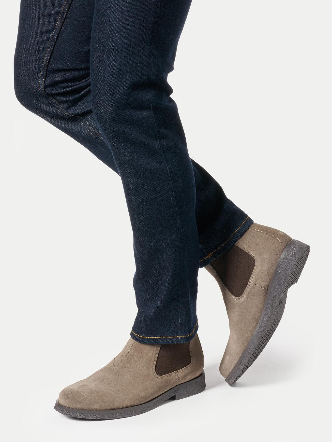 Buty Sztyblety Geox Uomo Claudio A - Suede Dove Grey U2658A Brązowe Symbol: GE232-a Kolor: Brązowy Rozmiar: 44 (29.3 cm) Wiecej rozmiarów i kolorów znajdziesz na pozostałych aukcjach. Opis produktu Męskie sztyblety Geox Uomo Claudio to stylowe obuwie idealne na sezon przejściowy i jesienno-zimowe stylizacje. Cholewka za kostkę została wykonana z naturalnego zamszu, który zapewnia elegancki wygląd i przyjemne dopasowanie do stopy. Wnętrze butów tworzy miękki materiał tekstylny w połączeniu z imitacją skóry, gwarantując komfort i odpowiednią cyrkulację powietrza. Wkładka z imitacji skóry zwiększa wygodę użytkowania oraz sprawia, że buty sprawdzą się nawet przy dłuższym noszeniu. Sztyblety nie posiadają ocieplenia, dzięki czemu są odpowiednie na cieplejsze dni oraz do biura lub codziennych miejskich stylizacji. Elastyczne boczne wstawki oraz pętelka z tyłu ułatwiają zakładanie i zdejmowanie butów, a jednocześnie dodają klasycznego charakteru modelowi. To doskonały wybór dla mężczyzn ceniących elegancję, wygodę i ponadczasowy styl w codziennym obuwiu. Galeria zdjęć
