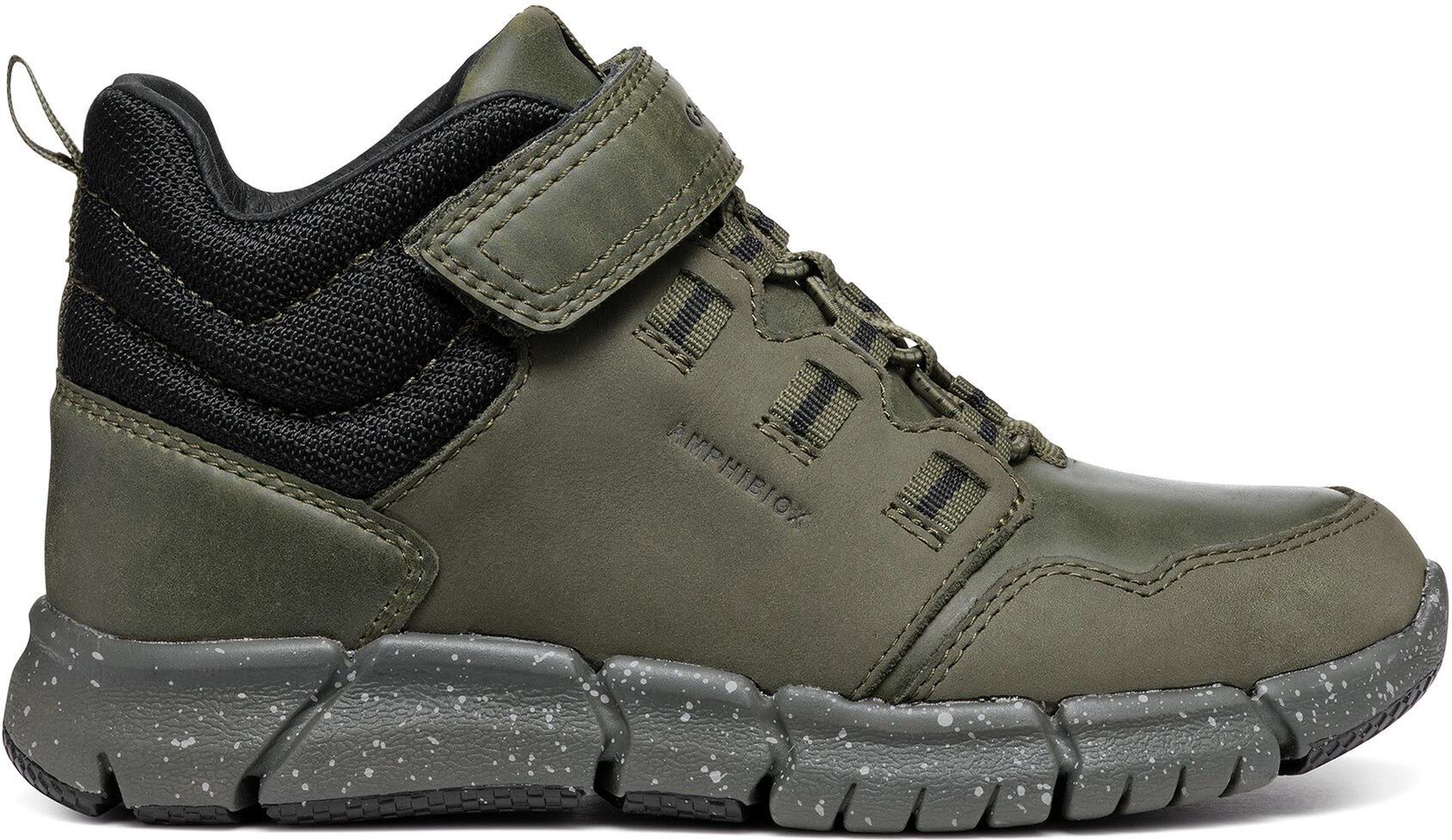 KOD PRODUKTU: J949XA 032FU C450 Wygodne, wodoodporne i przytulne botki chłopięce z doskonałą amortyzacją. Botki Flexyper ABX wyróżniają się cholewką wykonaną z nubuku i nylonu w zielonej kolorystyce; został wzbogacony o detale zewnętrzne i osadzony na innowacyjnej podeszwie zewnętrznej, która zapewnia elastyczność, amortyzację i stabilność na każdym kroku. Przytulny i wodoodporny, to idealny sposób na pokrycie wszelkich podstaw codziennego życia. CHARAKTERYSTYKA System opracowany przez firmę Geox zapewniający oddychalność podeszwy zewnętrznej. Maksymalna wodoodporność i oddychalność zapewnia doskonałą ochronę nawet podczas ulewnego deszczu. Ochrona przed zimnem dzięki doskonałemu poziomowi izolacji termicznej. Znakomity efekt amortyzacji, który zapewnia ochronę oraz pochłania wstrząsy i wibracje. Lekkie obuwie umożliwiające wygodne chodzenie przez cały dzień. Bardzo wygodne obuwie, które zapewnia najwyższy poziom komfortu. Pojedyncze zapięcie na rzep i elastyczne sznurowanie ułatwiają zakładanie i regulację. Przytulna wyściółka wewnętrzna zapewnia lepszą ochronę przed zimnem. Wyjmowana wkładka jest higieniczna i praktyczna. Możliwy jest odbiór w Warszawie DOM MODY Ul. Bazyliańska 16 godziny otwarcia pon-pt 11-19 sob 10-14