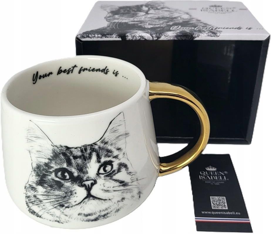 Kubek. Materiał: porcelana. Rozmiar: 9x14x11. Kolor: biały,czarny,złoty. Kolekcja Porcelna Cats Colletion to filiżanki i kubki z kotami , zapakowane w...