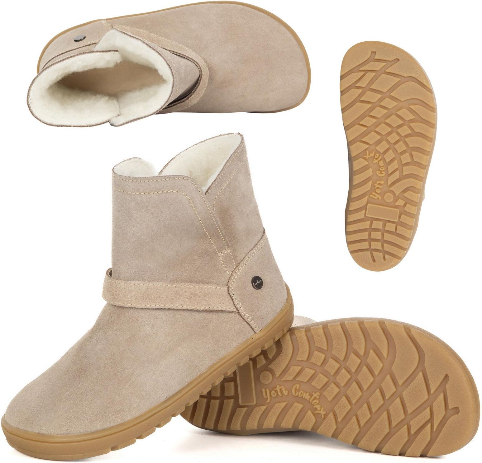 Buty damskie BAREFOOT zimowe Olivier Harper beżowe skórzane, ocieplane wełną merino Mordy