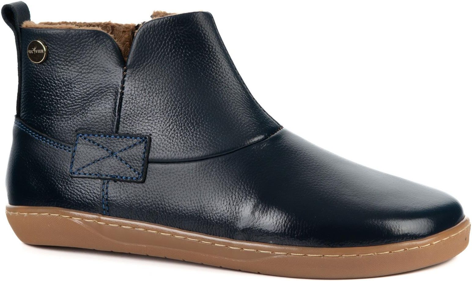 Buty damskie zimowe barefoot skórzane Z-B07 granatowe zamek Mordy