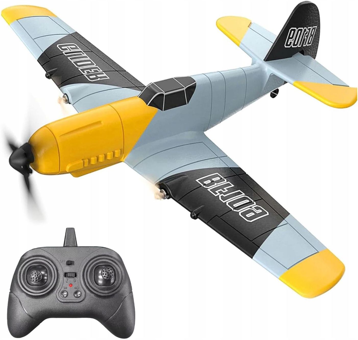 ZDALNIE STEROWANY SAMOLOT NA PILOTA LEKKI ZWINNY SZYBOWIEC + AKUMULATOR SAMOLOT ZDALNIE STEROWANY BF109! Messerschmitt BF109 to zdalnie sterowany samolot, który przypomina swój odpowiednik prawdziwego samolotu. Model ten jest doskonałym wyborem dla osób, które chcą rozpocząć swoją przygodę z maszyną, latają hobbystycznie lub poszukują dodatkowej zabawy i wyzwania! Idealnie odwzorowany model przyciągnie nie jeden wzrok ;) Samolot wykonany jest z piankowego materiału dzięki czemu jest lekki, zwinny, elastyczny i wytrzymały. Z łatwością utrzymuje się w powietrzu. Przeznaczony do latania na zewnątrz. Jest bardzo zwrotny i stosunkowo łatwy w pilotażu. Napędzany dwoma silnikami daje ogromne wrażenia z lotu oraz niesamowitą prędkość! Pilot bardzo prosty w obsłudze, poradzą sobie także początkujący. Kontroler daje możliwość latania kilkoma modelami na raz dzięki częstotliwości 2,4Ghz. Całość zapakowana w kolorowe opakowanie idealne nadaje się na prezent! Specyfikacja Wiek: 14+ Częstotliwość: 2.4 Ghz Tworzywo: materiał piankowy EPP Zasilanie samolotu: bateria litowo-jonowa 3,7 V 350 mAh Zasilanie pilota: baterie 3x AA 1,5V (nie dołączone) Wymiary samolotu: 30 x 37,5 (dł. x szer.) Wielkość opakowania: 34 x 33,5 x 9 cm (szer. x wys. x gł.) Zestaw zawiera Samolot BF109 Pilot zdalnego sterowania 2 zapasowe śmigła Akumulator Ładowarka USB
