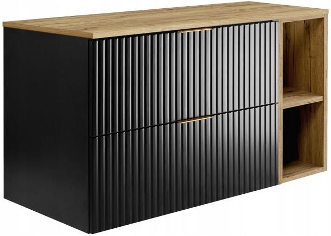 Czarna Szafka Łazienkowa Pod Umywalkę 100 Lakierowane Ryflowane Fronty Blat Mordy