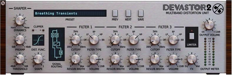 D16 Group Devastor 2 - Wtyczka Multiband Distortion (do pobrania) Symulacja klasycznego zniekształcacza diodowego z kompresorem wejściowym Trzy filtry wielomodowe z elastycznym routingiem Przełączany limiter 64-bitowa wewnętrzna głębia obliczeniowa Wymagania systemowe Format wysyłki: E-mail Ważność licencji: wieczysta Ochrona przed kopiowaniem: Aktywacja online Jednoczesne aktywacje: 3 Windows: od 7 Mac OS (64 bit): od 10.13 Procesor min.: SSE 1,5 GHz Pamięć RAM min.: 8 GB Obsługiwane formaty AAX native 64-Bit AU 32-Bit AU 64-Bit VST2 32-Bit VST2 64-Bit Po zakupie wtyczka do pobrania pod adresem www.d16.pl/userarea