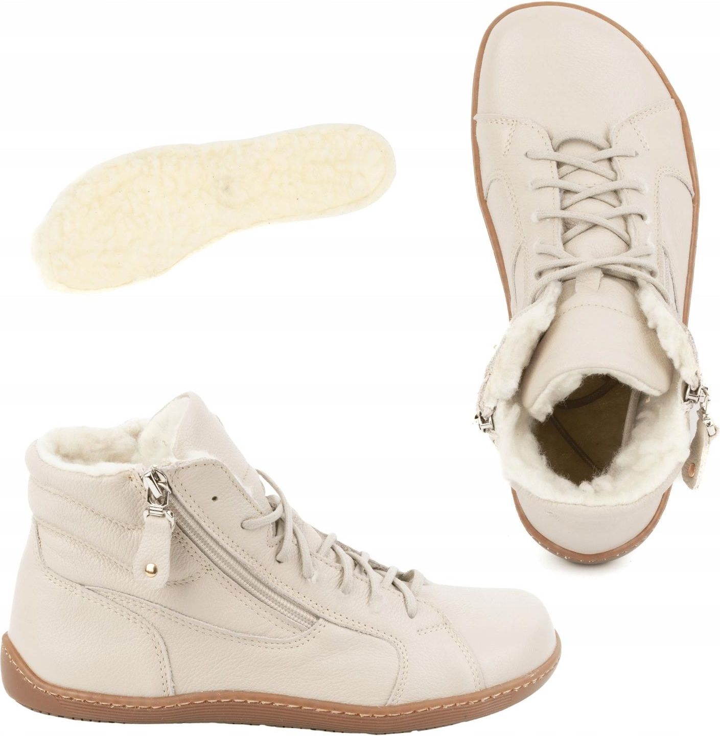Damskie Buty Zimowe Barefoot 1261 Naturalne beżowe Dwa Zamki Sznurowane 41 Mordy