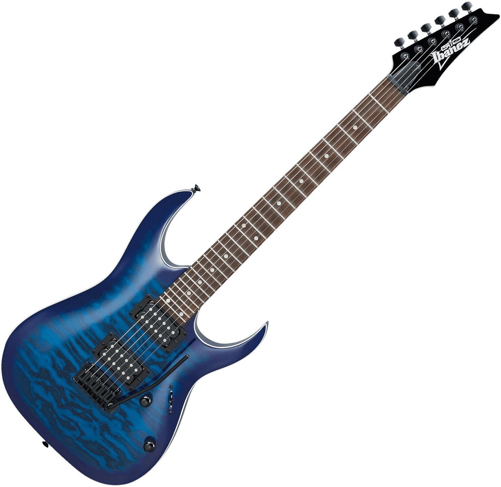Ibanez GRGA120QA TBB Gitara Elektryczna Cechy produktu: - Korpus: Topola - Góra: pikowany klon - Przykręcana szyjka: klon - Podstrunnica: Związane Purpurowe Serce - Inkrustacje podstrunnicy w białe kropki - Promień podstrunnicy: 400 mm - Długość skali: 648 mm - Szerokość nakrętki: 43 mm - Plastikowa nakrętka - 24 progi Jumbo - Przetwornik: 2 humbuckery Infinity R - Regulacja głośności i tonu - Przełącznik 5-kierunkowy - Tremolo T102 - Głowice maszyn Ibaneza - Czarny sprzęt - Kolor: przezroczysty niebieski wybuch