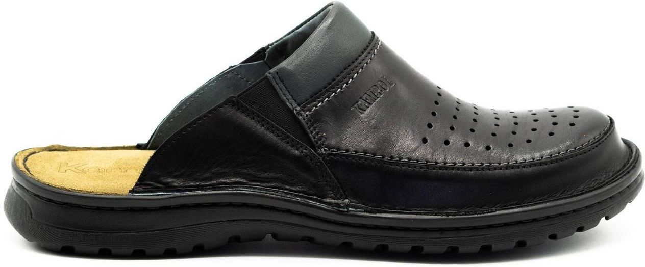 Kampol Klapki Męskie Skórzane 219 Czarne Mordy