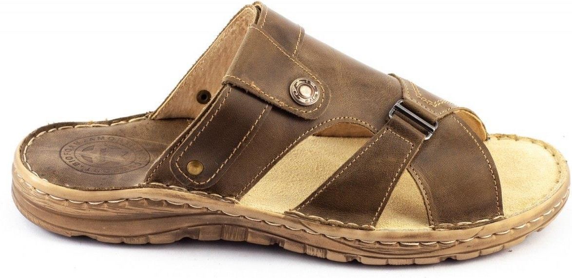 Klapki męskie ŁUKPOL model 866 to praktyczne obuwie wykonane z naturalnej skóry, stworzone z myślą o codziennym użytkowaniu w sezonie letnim. Szerokie paski dobrze trzymają stopę, a miękka, profilowana wkładka zapewnia komfort noszenia zarówno w domu, jak i na zewnątrz. Dzięki klasycznej formie i solidnemu wykonaniu model ten sprawdzi się u mężczyzn ceniących funkcjonalność, jakość i prostotę. To doskonały wybór dla osób szukających polskiego obuwia skórzanego w ponadczasowym stylu.