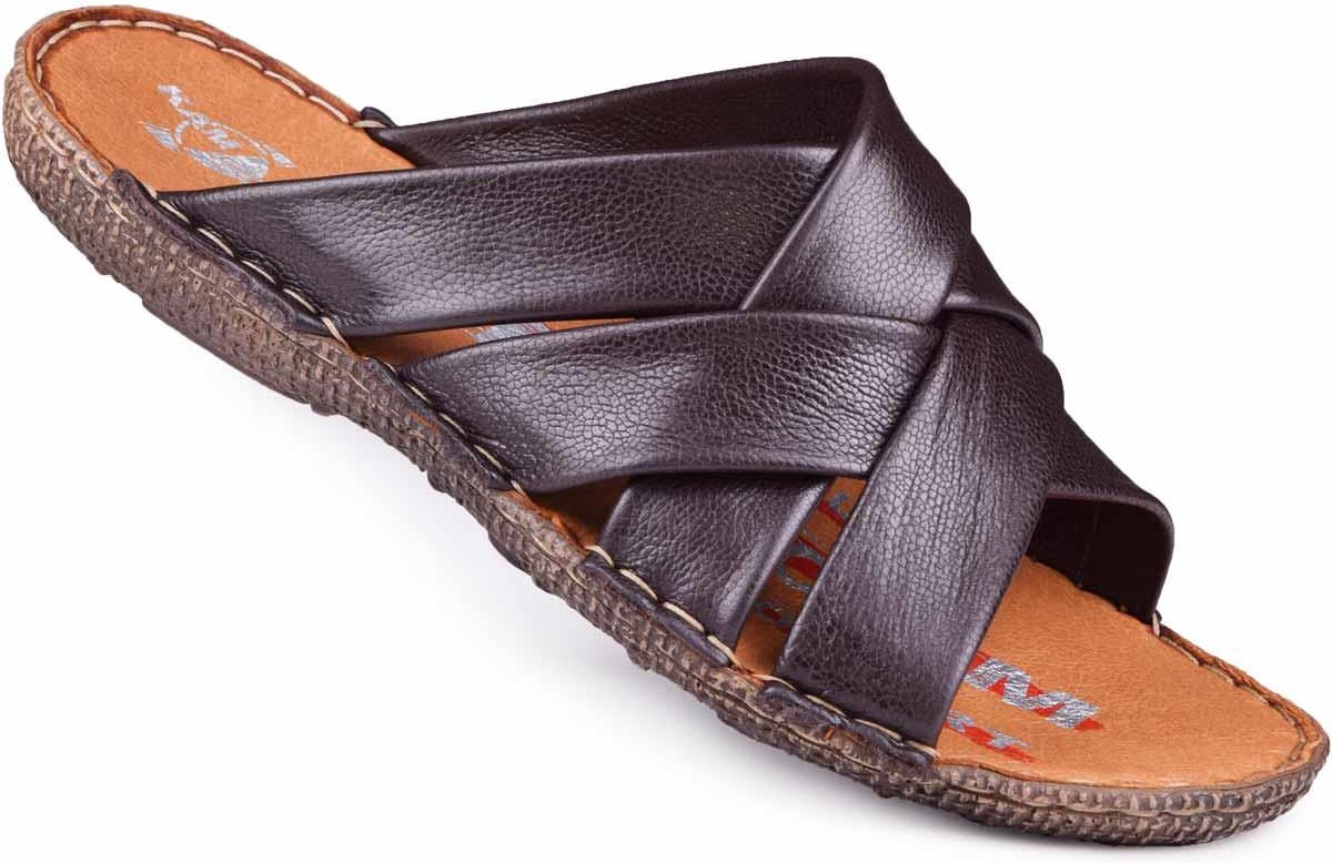 Klapki męskie skórzane 214 BR brązowe Mordy