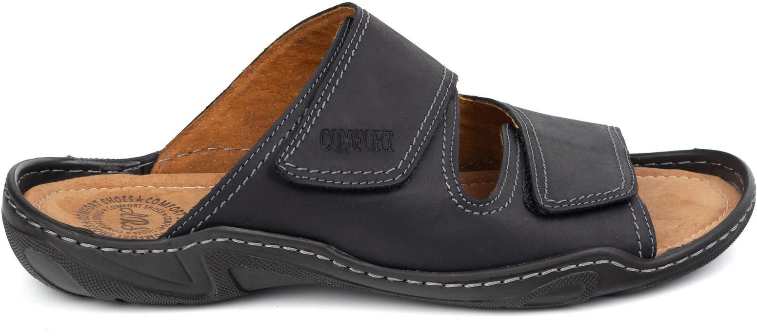 Klasyczne klapki skórzane męskie na rzepy 0048 czarny nubuk Mordy