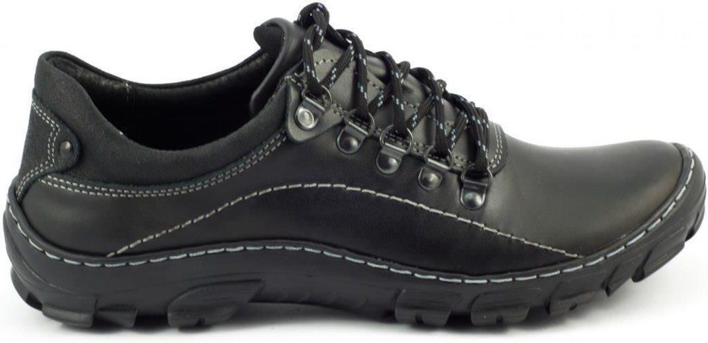 Buty męskie o trekkingowym kroju to codzienny komfort dla mężczyzn, którzy lubią wygodne obuwie, ale jednocześnie chcą, żeby obuwie świetnie się prezentowało. Te buty męskie wykonane są na zewnątrz z licowej skóry naturalnej, łatwej do utrzymania jej w idealnej czystości. Wewnętrzna wkładka także jest ze skóry naturalnej. Dzięki temu zachowana jest właściwa cyrkulacja powietrza. Te buty męskie to idealny wybór na co dzień.Buty męskie wykonane ze skóry dostępne są w kilku modnych kolorach. Ich ciekawym urozmaiceniem są kontrastowe paski. Elastyczna podeszwa sprawia, że ich noszenie jest bardzo komfortowe, a buty dopasowują się do kształtu stopy. Można je nosić na przykład z jeansami. Są idealnym wyborem na wiosnę i jesień, ale także na lato. Lekkie, sznurowane buty mogą być elementem wyprawowych stylizacji. Wykonane przez polskiego producenta buty męskie są znakomitej jakości. Przy odpowiedniej pielęgnacji zachowują swoją urodę na długi czas.