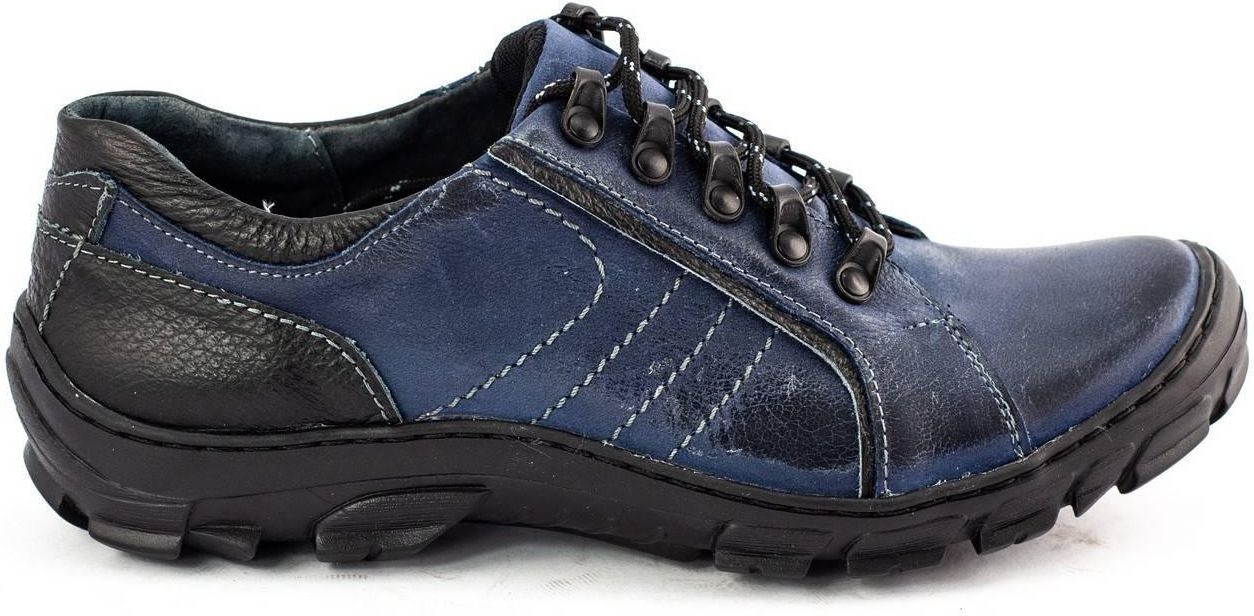 Buty męskie o trekkingowym kroju to codzienny komfort dla mężczyzn, którzy lubią wygodne obuwie, ale jednocześnie chcą, żeby obuwie świetnie się prezentowało. Te buty męskie wykonane są na zewnątrz z licowej skóry naturalnej, łatwej do utrzymania jej w idealnej czystości. Wewnętrzna wkładka także jest ze skóry naturalnej. Dzięki temu zachowana jest właściwa cyrkulacja powietrza. Te buty męskie to idealny wybór na co dzień.Buty męskie wykonane ze skóry dostępne są w kilku modnych kolorach. Ich ciekawym urozmaiceniem są kontrastowe paski. Elastyczna podeszwa sprawia, że ich noszenie jest bardzo komfortowe, a buty dopasowują się do kształtu stopy. Można je nosić na przykład z jeansami. Są idealnym wyborem na wiosnę i jesień, ale także na lato. Lekkie, sznurowane buty mogą być elementem wyprawowych stylizacji. Wykonane przez polskiego producenta buty męskie są znakomitej jakości. Przy odpowiedniej pielęgnacji zachowują swoją urodę na długi czas.