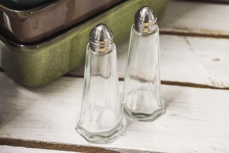 W zestawie: 2 szklane pojemniki z metalowymi zakrętkami kartonowe opakowanie Specyfikacja: kolor pojemnika: przeźroczysty kolor zakrętki: srebrny materiał: szkło, metal przeznaczone do kontaktu z żywnością wysokość pojemnika: 11 cm ilość otworów w zakrętce: 6 szt. waga wraz z opakowaniem: 0,18 kg pojemność 40ml