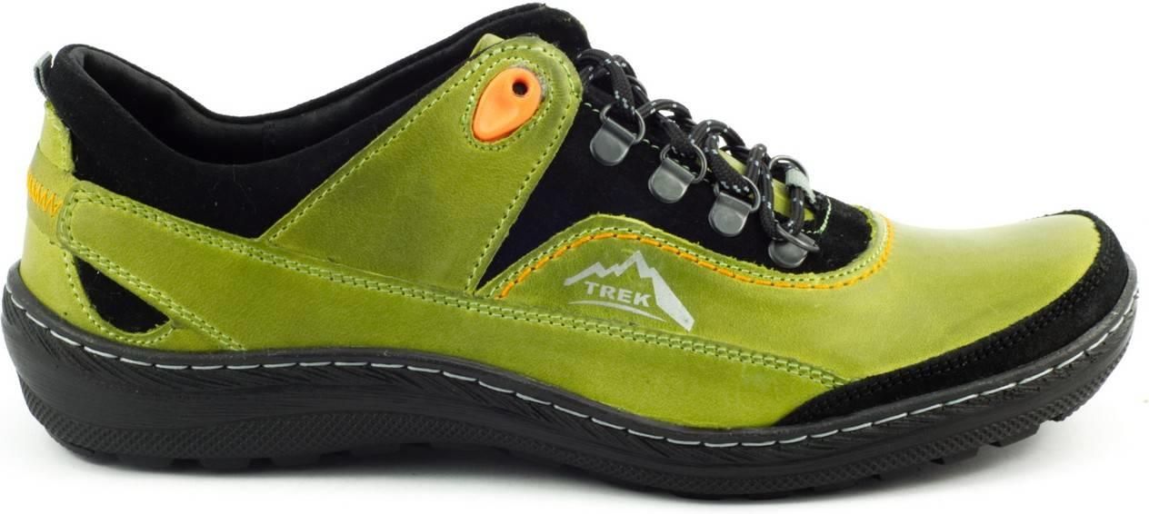 Buty męskie trekkingowe skórzane sznurowane POLSKIE 268 zielone Buty męskie o trekkingowym kroju to codzienny komfort dla mężczyzn, którzy lubią wygodne obuwie, ale jednocześnie chcą, żeby obuwie świetnie się prezentowało. Te buty męskie wykonane są na zewnątrz z licowej skóry naturalnej, łatwej do utrzymania jej w idealnej czystości. Wewnętrzna wkładka także jest ze skóry naturalnej. Dzięki temu zachowana jest właściwa cyrkulacja powietrza. Te buty męskie to idealny wybór na co dzień.Buty męskie wykonane ze skóry dostępne są w kilku modnych kolorach. Ich ciekawym urozmaiceniem są kontrastowe paski. Elastyczna podeszwa sprawia, że ich noszenie jest bardzo komfortowe, a buty dopasowują się do kształtu stopy. Można je nosić na przykład z jeansami. Są idealnym wyborem na wiosnę i jesień, ale także na lato. Lekkie, sznurowane buty mogą być elementem wyprawowych stylizacji. Wykonane przez polskiego producenta buty męskie są znakomitej jakości. Przy odpowiedniej pielęgnacji zachowują swoją urodę na długi czas. Gatunek: I Kolor: Zielony Materiał wewnętrzny: Skóra naturalna Materiał: Skóra naturalna Podeszwa: Kauczuk termoplastyczny Sposób wykonania: Szyte, Klejone Typ: Casual Tęgość: G Zapięcie: Sznurowane Konserwacja: Pasty do skór licowych, Tłuszcze do konserwacji typu Mink Oil Tabela rozmiarów Rozmiar 40 - wkładka: 26,5 cm Rozmiar 41 - wkładka: 27 cm Rozmiar 42 - wkładka: 27,5 cm Rozmiar 43 - wkładka: 28 cm Rozmiar 44 - wkładka: 29 cm Rozmiar 45 - wkładka: 29,5 cm