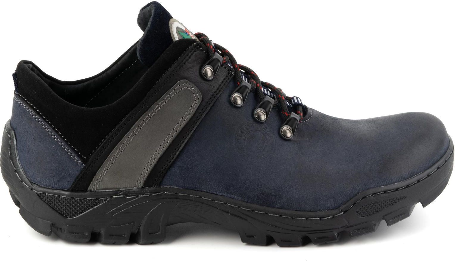 Skórzane buty męskie trekkingowe sznurowane POLSKIE 311GT granatowe Buty męskie trekkingowe 311GT firmy Olivier to obuwie dla osób aktywnych. Idealne na spacery i inne aktywości na świeżym powietrzu. Buty wykonane są ze skóry naturalnej w środku i wewnątrz. Podeszwa wykonana z wysokogatunkowego tworzywa zapewnia przyczepność do położa. Buty są sznurowane co ułatwia ich dopasowanie do nogi. Model butów 311GT ze skóry naturalnej sprawdzą się na codzień dla osób nie tylko aktywnych fizycznie, ale różnież w codziennym użytkowaniu. Kolor: Niebieski Materiał: Skóra naturalna Materiał wewnętrzny: Skóra naturalna Zapięcie: Sznurowane Podeszwa: Kauczuk termoplastyczny Sposób wykonania: Szyte, Klejone Typ: Casual Tęgość: G Gatunek: I Płeć: Męskie Sezonowość: Całoroczne Konserwacja: Pasty do skór licowych, Tłuszcze do konserwacji typu Mink Oil Tabela rozmiarów Rozmiar 40 - wkładka: 26,5 cm Rozmiar 41 - wkładka: 27 cm Rozmiar 42 - wkładka: 28 cm Rozmiar 43 - wkładka: 28,5 cm Rozmiar 44 - wkładka: 29 cm Rozmiar 45 - wkładka: 30 cm