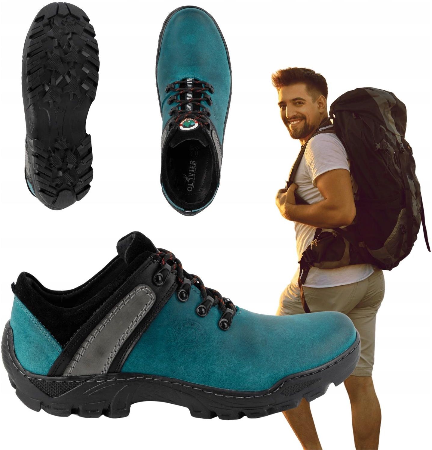Skórzane buty męskie trekkingowe sznurowane POLSKIE 311GT Turkusowe Buty męskie trekkingowe 311GT firmy Olivier to obuwie dla osób aktywnych. Idealne na spacery i inne aktywości na świeżym powietrzu. Buty wykonane są ze skóry naturalnej w środku i wewnątrz. Podeszwa wykonana z wysokogatunkowego tworzywa zapewnia przyczepność do położa. Buty są sznurowane co ułatwia ich dopasowanie do nogi. Model butów 311GT ze skóry naturalnej sprawdzą się na codzień dla osób nie tylko aktywnych fizycznie, ale różnież w codziennym użytkowaniu. Kolor: Turkus Materiał: Skóra naturalna Materiał wewnętrzny: Skóra naturalna Zapięcie: Sznurowane Podeszwa: Kauczuk termoplastyczny Sposób wykonania: Szyte, Klejone Typ: Casual Tęgość: G Gatunek: I Płeć: Męskie Sezonowość: Całoroczne Konserwacja: Pasty do skór licowych, Tłuszcze do konserwacji typu Mink Oil Tabela rozmiarów Rozmiar 40 - wkładka: 26,5 cm Rozmiar 41 - wkładka: 27 cm Rozmiar 42 - wkładka: 28 cm Rozmiar 43 - wkładka: 28,5 cm Rozmiar 44 - wkładka: 29 cm Rozmiar 45 - wkładka: 30 cm