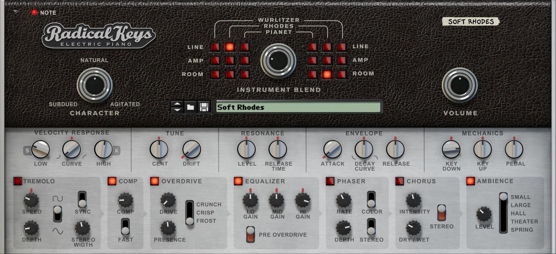 Propellerhead Radical Keys Wirtualny instrument VST Radical Keys oferuje trzy klasyczne instrumenty klawiszowe w jednym, świetnie brzmiącym pakiecie: Rhodes Mk1, Wurlitzer i Pianet-T. Wszystkie są dostarczane za pośrednictwem najnowocześniejszego silnika Radical Engine firmy Propellerhead, łączącego próbki z modelowaniem fizycznym, aby wydobyć charakterystyczne cechy tych legendarnych instrumentów. Otrzymujesz instrument, który można dowolnie modyfikować i natychmiast grać, a jego możliwości brzmieniowe sięgają od ultra realistycznych do całkowicie niezwykłych. Wykorzystując najnowocześniejszy silnik Radical Engine firmy Reason Studios, ta rozszerzenie Rack Extension łączy próbki z modelowaniem fizycznym, aby wydobyć charakter i osobliwości tych legendarnych instrumentów. Otrzymujesz instrument, który można w nieskończoność modyfikować i natychmiast grać, a którego możliwości brzmieniowe sięgają od ultra realistycznych do całkowicie niezwykłych. Dzięki połączeniu próbek i modelowania Radical Keys wykracza poza zwykłą emulację klasycznych brzmień. Silnik Radical Engine pozwala mieszać sygnały i modelowanie z różnych łańcuchów sygnałowych — czystego nagrania, wzmacniacza i mikrofonu otoczenia. Możesz mieszać i dopasowywać łańcuchy sygnałowe, a nawet różne instrumenty, aż uzyskasz pożądane brzmienie. Dodatkowo rozciągnij brzmienie za pomocą pokrętła Character, aby stonować fortepian, jeśli chcesz, aby pozostał w tle, lub podkręć go do stanu pobudzenia, aby przebił się przez każdy miks. Najlepszy przyjaciel muzyka Ale przede wszystkim Radical Keys to instrument dla muzyków. Zawiera ponad 100 ręcznie dostrojonych presetów w różnych stylach, dzięki czemu od razu po wyjęciu z pudełka można grać na fantastycznie brzmiących instrumentach. Potężny wbudowany łańcuch efektów Radical Keys sprawia, że patche są pełne charakteru i gotowe do gry. Instrumenty zostały nagrane w Sveriges Radio w Sztokholmie przy użyciu najnowocześniejszego sprzętu vintage i najnowocześniejszych urządzeń. Nagrania zostały wykonane przez nagrodzonego Grammy inżyniera dźwięku, aby uchwycić nie tylko brzmienie, ale i duszę tych klasycznych instrumentów. * Wszystkie użyte nazwy produktów są znakami towarowymi ich właścicieli i w żaden sposób nie stanowią powiązania ani afiliacji z Reason Studios lub firmami, z którymi przeprowadzono wywiady. Wszelkie wymienione produkty lub znaki towarowe są używane wyłącznie w celu identyfikacji produktów, których brzmienie było badane podczas rozwoju i/lub wyłącznie w celach porównawczych .