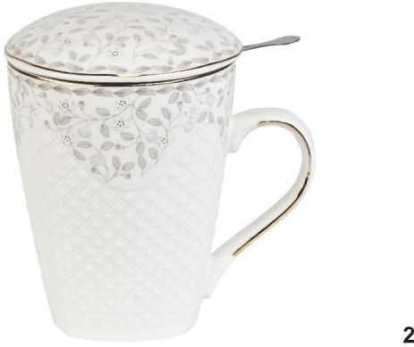 Kubek to wyjątkowy produkt, który świetnie sprawdzi się w Twoim domu lub będzie idealnym pomysłem na prezent. Dzięki swojej pojemności 430 ml możesz się cieszyć dłużej smakiem swojej ulubionej kawy czy herbaty Został wykonany z wysokiej jakości porcelany. Wyposażony jest w metalowe sitko, które idealnie nada się do zaparzania liściastej herbaty lub ziół, porcelanową pokrywkę i ozdobne pudełko. Kubek ma złote zdobienie i wypukłą fakturę u dołu. Dodatkowo posiada ładne, ozdobne wzory, te same z dwóch stron. Zalety:- duża pojemność 430 ml- piękne i oryginalne zdobienia - wykonanie z porcelany - można myć w zmywarce i podgrzewać w kuchence mikrofalowej- doskonały na prezent Parametry: - Materiał: wysokiej jakości porcelana- Pojemność: 430ml- Do wyboru: 4 wzory- Zestaw składa się z: porcelanowy kubek 430ml, metalowe sitko do zaparzania ziół, porcelanowa pokrywka, pudełko- Wymiary kubka: średnica: 10 cm wysokość: 13 cm długość: 13 cm szerokość: 10 cm - Wymiary sitka: średnica: 9 cm wysokość: 6 cm