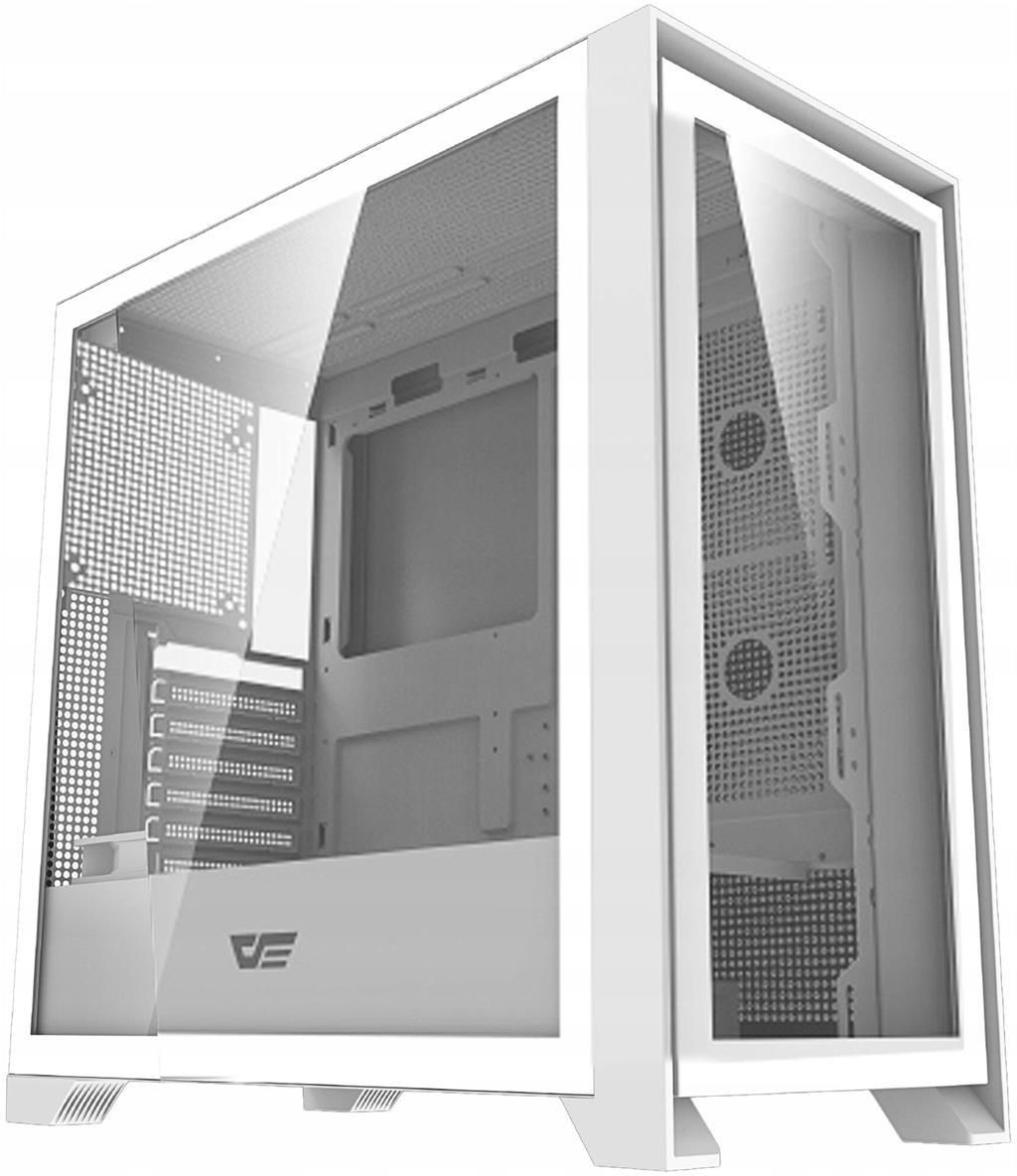 DarkFlash DRX90 Glass Obudowa Komputerowa ATX Midi Tower Piwnica Gaming Darkflash DRX90 Glass to praktyczna obudowa komputerowa, która pozwoli Ci stworzyć wydajną konfigurację sprzętową do pracy, gier i nie tylko. Dzięki panelom z hartowanego szkła z przodu i z boku pozwala efektownie wyeksponować wybrane podzespoły, a kompatybilność z różnymi standardami płyt głównych i popularnymi podzespołami daje pełną swobodę montażu. Możesz też bez problemu zadbać o wydajne chłodzenie swojego komputera – możliwa jest instalacja aż 12 wentylatorów. Mnóstwo możliwości rozbudowy Obudowa Darkflash DRX90 Glass została zaprojektowana z myślą o rozbudowanych konfiguracjach, umożliwiając montaż różnorodnych podzespołów. Pomieści karty graficzne o długości do 395 mm i chłodzenie procesora o wysokości do 185 mm, a ponadto jest kompatybilna z płytami głównymi ATX, M-ATX i ITX. Możesz też zamontować w niej dwa dyski HDD lub jeden dysk SSD. Dzięki temu bez problemu zapewnisz sobie miejsce na swoje pliki! Co więcej, obudowa pozwala na instalację kart graficznych o różnej grubości. Jeszcze więcej udogodnień dla Ciebie Model DRX90 Glass został wyposażony w szereg funkcjonalnych udogodnień, które ułatwiają codzienne użytkowanie. Magnetyczny, bezśrubowy panel przedni umożliwia szybki dostęp do jego wnętrza, usprawniając konserwację i instalację komponentów. Dodatkowo zintegrowany system zarządzania kablami ze specjalnymi przepustami pozwala na estetyczne uporządkowanie przewodów i zapewnia schludny wygląd, a trapezoidalne stopki z amortyzacją stabilizują obudowę, redukując drgania. Zaawansowane opcje chłodzenia Obudowa DRX90 Glass oferuje wyjątkowe możliwości odprowadzania ciepła dzięki wsparciu dla maksymalnie 12 wentylatorów lub chłodzenia wodnego 360 mm. Możesz więc z łatwością zadbać o odpowiednią cyrkulację powietrza i zapewnić podzespołom swojego komputera optymalną temperaturę do pracy! Bez obaw graj w nawet najbardziej wymagające tytuły i miej pewność, że Twój sprzęt nie będzie się przegrzewał. Przydatne złącza i ochrona przed kurzem Obudowa została wyposażona w szeroki wybór portów, w tym USB-C, USB 3.0, USB 2.0, wejście mikrofonowe i wyjście słuchawkowe. Dzięki temu możesz wygodnie podłączać urządzenia peryferyjne i przesyłać pliki! W skład zestawu wchodzą także specjalne osłony przeciwkurzowe, które chronią złącza przed zabrudzeniami i zapewniają im długą żywotność. Wyjątkowy styl Obudowa Darkflash DRX90 Glass idealnie wpasowuje się w estetykę współczesnych zestawów komputerowych. Dzięki panelom z hartowanego szkła na froncie i z boku pozwala na pełną ekspozycję podzespołów i efektowne prezentowanie wnętrza komputera. Doskonale sprawdzi się na przykład w połączeniu z wentylatorami RGB – to świetny sposób na nadanie całej konfiguracji gamingowego charakteru! Specyfikacja Producent: Darkflash Model: DRX90 Glass Typ obudowy: Middle Tower Panel boczny: Szkło hartowane Panel przedni: Szkło hartowane Podświetlenie: Nie Standard płyty głównej: ATX / M-ATX / ITX Standard zasilacza: ATX Miejsca na wewnętrzne dyski/napędy: 2x HDD / 1x SSD Miejsca na karty rozszerzeń: 7 Maksymalna długość karty graficznej: 395 mm Maksymalna wysokość chłodzenia CPU: 185 mm Maksymalna liczba wentylatorów: 12 (brak wentylatorów w zestawie). Opcje montażu wentylatorów: Przód: 3x wentylator 120 mm / 3x wentylator 140 mm; Góra: 3x wentylator 120 mm / 2x wentylator 140 mm; Tył: 1x wentylator 120 mm / 1x wentylator 140 mm; Komora PSU: 3x wentylator 120 mm; Bok: 2x wentylator 120 mm; Opcje montażu chłodzenia wodnego: Góra: chłodzenie wodne 240 / 280 / 360 mm; Tył: chłodzenie wodne 120 mm; Przyciski i regulatory: Power, Reset Złącza: 1x USB 3.0, 1x USB 2.0, 1x USB-C, wejście mikrofonowe, wyjście słuchawkowe Materiał: 0,6 mm SPCC Kolor: Biały Dołączone akcesoria: Osłony przeciwkurzowe na porty (1x USB-C, 2x USB, 2x audio) Wysokość: 460 mm Szerokość: 230 mm Głębokość: 465 mm