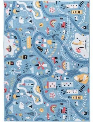 Dywan MULTIDECOR Stella Ulice 100 X 150 cm Niebieski to gwarancja wesołej i dziecięcej zabawy oraz wsparcie w nauce. Dywan z ulicami to doskonały element wnętrza pokoju dziecięcego, który zamieni jego podłogę w niezwykły tor wyścigowy dla samochodów lub krainę dla bajkowych postaci.