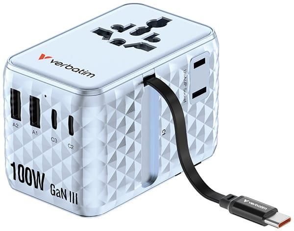 Verbatim Uniwersalny Adapter Podróżny Charge ,N Travel 2X Usb-C Usb-A + 1X Zintegrowany Kabel Niebieska 100 W Moryń