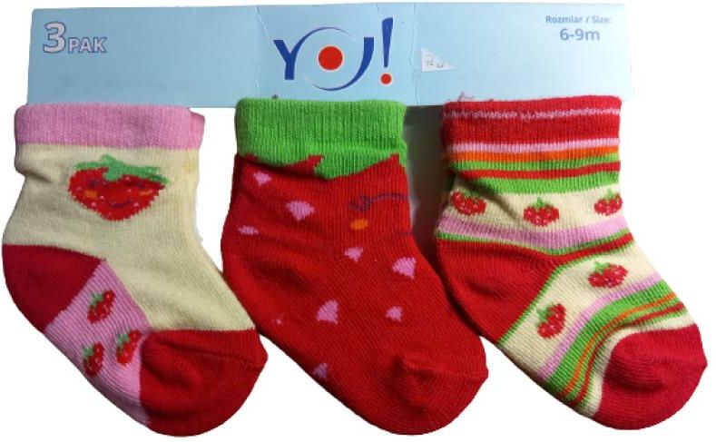 Skarpetki niemowlęce służą nie tylko jako ozdoba, ale przede wszystkim pełnią funkcję ochronną. Skarpety dziewczęce przyczyniają się do utrzymania prawidłowej temperatury ciała dziecka. Zapewniają doskonały przepływ powietrza dlatego można nosić je nawet w bardzo ciepłe dni. Oferowany produkt to 3-pak bawełnianych skarpetek dla niemowląt. Delikatny ściągacz nie uciska niemowlęcych nóżek.. * polski producent YO! * wykonane są z miękkiego i przyjemnego w dotyku materiału, który po wielokrotnym praniu pozostaje w niezmienionym stanie * skład bawełna 80%, poliamid 15%, elastan 5% * materiały użyte do produkcji posiadają atesty - są bezpieczne dla skóry Twojego dziecka * jakość pierwsza