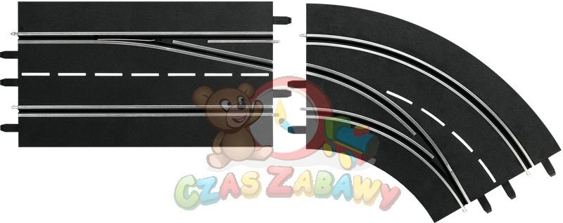 Akcesoria do torów CARRERA DIGITAL 132 - Zakręt w prawo ze zmianą pasa z zewnątrz do wewnątrzCarrera DIGITAL 132 to seria, w której tory wykonane są w skali 1:24, natomiast samochody w skali 1:32. Jednocześnie mogą uczestniczyć tutaj w wyścigu aż 6 samochodów. Radość i satysfakcję z rywalizacji sportowej może czerpać również pojedyńczy gracz, który ma okazję zmierzyć się z zaprogramowanym samochodem treningowym, nowością jest również możliwość zabawy z samochodem SAFETY CAR!. System DIGITAL 132 jest kompatybilny z EVOLUTION PRO-X i z prostymi i zakrętami serii Evolution, można go rozbudowywać na wiele sposobów. Dodatkowo wyposażony został w specjalne sekcje zmiany toru, pozwalające na rozwinięcie maksymalnej prędkości oraz charakterystyczne akcesoria dodatkowe m.in.: elektroniczny licznik okrążeń czy pit stop podnoszący realizm wyścigów dzięki konieczności robienia postojów w celu uzupełnienia zapasów paliwa. Prędkość przejazdu przez pit stop jest ograniczona za pomocą elektroniki umieszczonej w tzw. Black Boxie, który steruje wszystkimi procesami i parametrami wyścigu. Seria DIGITAL 132 to samochody cyfrowo kontrolowane i indywidualnie kodowane, co umożliwia jednoczesne poruszanie się aż 6 aut na jednym torze jazdy (w jednym rowku). Wysokiej klasy, oryginalne wyścigówki zostały wyprodukowane w technice tampodruku z ogromną dbałością o szczegóły. Wszystkie samochody tej serii przemieszczają się na specjalnie skonstruowanych prowadnicach, mocowanych do zawieszenia. Dzięki zastosowaniu w systemach DIGITAL 132 w pełni cyfrowego sterowania samochodami, uzyskano efekty oddające realizm emocjonujących i pełnych rywalizacji wyścigów samochodowych. WAŻNE! Zestawy torów DIGITAL 132 (system cyfrowy) i Evolution (system analogowy) są dwoma niezależnymi zestawami. Jedynymi komponentami, ktore są kompatybilne i mogą być wykorzystywane w rozbudowie torów są: standardowe proste, zakręty, zwężenia. Uszkodzisz tor DIGITAL 132 podłączając do niego takie elementy torów analogowych (Evolution, Exclusiv) jak: transformator, kontroler, szyna przyłączeniowa. Nieprawidłowe użytkowanie skutkuje utratą gwarancji. Carrera - legenda i doświadczenie w tworzeniu scenerii wyścigów samochodowych! Carrera to hiszpańskie słowo oznaczające wyścig. Ten zwięzły termin niezwykle trafnie i rzeczowo zarysowuje filozofię i dziłalność firmy, która swe pierwsze produkty wprowadziła na rynek już w 1963 roku. Dość szybko Carrera stała się lidrem sprzedaży w swej branży i dziś jest głównym, światowym producentem w segmencie torów i samochodów wyścigowych. Wszystko to, dzięki zastosowaniu wielu innowacyjnych rozwiązań oraz nowoczesnych technologii, wykorzystywanych przy konstruowaniu systemów torów. Modne i oryginalne reprodukcje modeli samochodów wyścigowych to kolejne istotne założenie stanowiące fundament sukcesu Carrery. U podstaw filozofii firmy leży fascynacja światem wyścigów i samochodów, unikalne wzornictwo oraz nieodparta chęć do współzawodnictwa, które to przekładają się na wysoką jakość i technologię unikalnych produktów. Carrera, przenosząc cudowny świat wyścigów samochodowych do naszych domów, ofiarowuje zarówno dzieciom jak i dorosłym wiele godzin fascynującej i pełnej emocji zabawy.