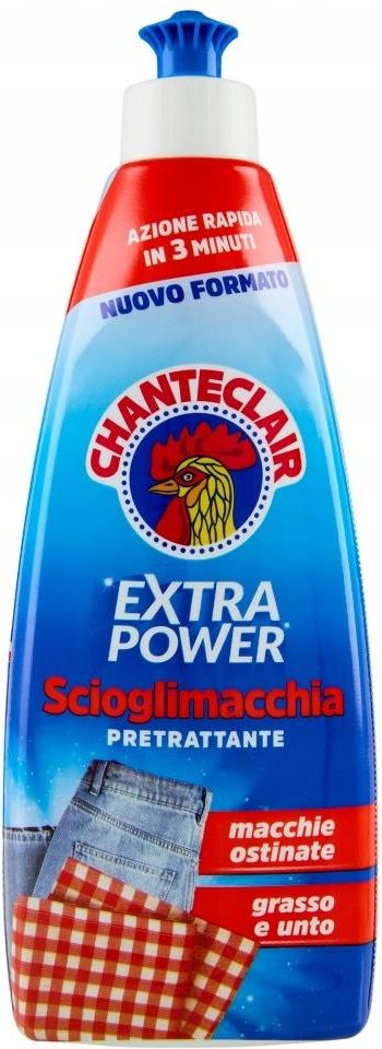 Chanteclair Scioglimacchia Extra Power odplamiacz do tkanin (500 ml) Chanteclair Scioglimacchia Extra Power - Odplamiacz do tkanin (500 ml) Nowa formuła Extra Power wzbogacona jest o oryginalny odtłuszczacz Chante Clair, działa już w niskich temperaturach i wnika we włókna ubrań usuwając nawet tłuste i zaskorupiałe plamy takie jak trawa, czekolada, wino, pomidory czy owoce. Nadaje się również do ubrań kolorowych i białych. Sposób użycia nanieść środek na plamę delikatnie potrzyj odczekaj kilka minut następnie wypierz zaplamioną rzecz w pralce Odplamiacz do tkanin Scioglimacchia Extra Power 500ml marki Chante Clair to niezawodny produkt do walki z uporczywymi plamami na różnych rodzajach tkanin. Formuła o wysokiej skuteczności doskonale radzi sobie z usuwaniem nawet najtrudniejszych zabrudzeń, pozostawiając materiał czysty i świeży. Produkt ten nadaje się do użycia zarówno do prania ręcznego, jak i maszynowego, zapewniając wygodę oraz oszczędność czasu. Scioglimacchia Extra Power jest bezpieczny dla tkanin kolorowych i białych, dzięki czemu nadaje się do codziennego użytku w każdym gospodarstwie domowym. Dla uzyskania najlepszych efektów, wystarczy nałożyć odpowiednią ilość preparatu bezpośrednio na plamę, pozostawić na chwilę, a następnie przeprowadzić zwykły proces prania. Wybierając Chante Clair Odplamiacz do tkanin, inwestujesz w jakość i efektywność, które sprawią, że twoje ubrania będą dłużej wyglądały jak nowe.