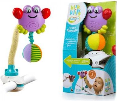 Innowacyjna zabawka w kształcie kraba z dzwoniącą piłeczką, po pociągnięciu której słychać zabawny, terkoczący dźwięk. Kontrastowe kolory pobudzają zmysł wzroku maluszka, a działanie zabawki uczy go zależności przyczynowo – skutkowej. W skład zestawu wchodzi zabawka w kształcie kraba, giętkie ramię i klamra do mocowania. Zabawka przeznaczona dla dzieci od dnia narodzin.   Krabik Szkrabik Materiał o różnej teksturze rozwija zmysł dotyku Kontrastowe kolory pobudzają zmysł wzroku Po pociągnięciu grzechoczącej piłeczki wydaje zabawny dźwięk, który dostarcza rozrywki i radości najmłodszym Wymienne zabawki są dostosowane do poszczególnych etapów rozwoju dziecka Do zabawy w dowolnym miejscu: wózku, dziecięcym łóżeczku, foteliku samochodowym, krzesełku, na huśtawce, przy stole i wszędzie, gdzie tylko zechcesz. Klamra Innowacyjność Najwyższa jakość Pełne bezpieczeństwo mocowania w każdym miejscu Kontrastowe kolory pobudzają zmysł wzroku Łączy się z elastycznym ramieniem i podwójnym konektorem Rozmiar: 9 cm x 6,5 cm   Elastyczne ramię Innowacyjność Wysoka jakość Zakres wygięcia: 100 stopni Łączy się z klamrą, podwójnym i pojedynczym konektorem oraz z zabawkami Rozmiar: 19,5 cm x 4,8 cm