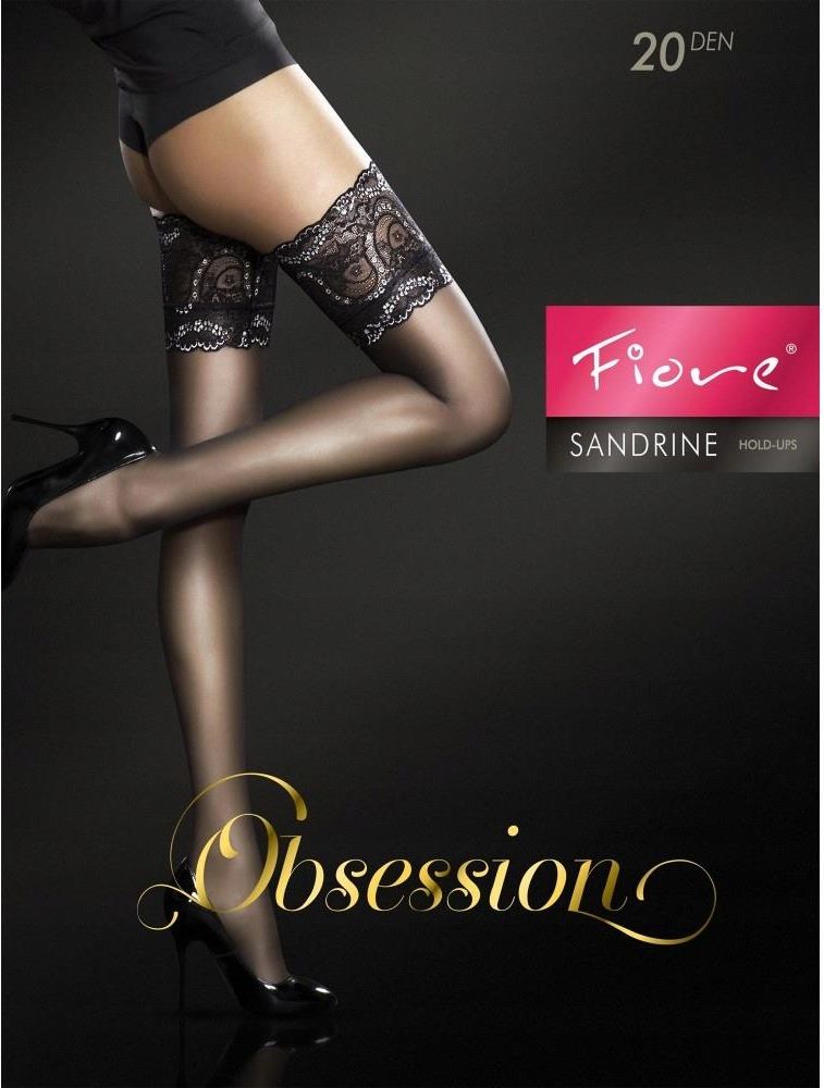 FIORE SANDRINE Pończochy samono?e 2 3-M/black Ekskluzywne, gładkie pończochy samonośne. Transparentne, matowe, wykonane z Lycry z najwyższej jakości przędzy oplatanej dla zwiększenia trwałości. Na górze wykończone fantazyjną, seksowną koronką podszytą podwójnym paskiem silikonu dla wygody noszenia. …